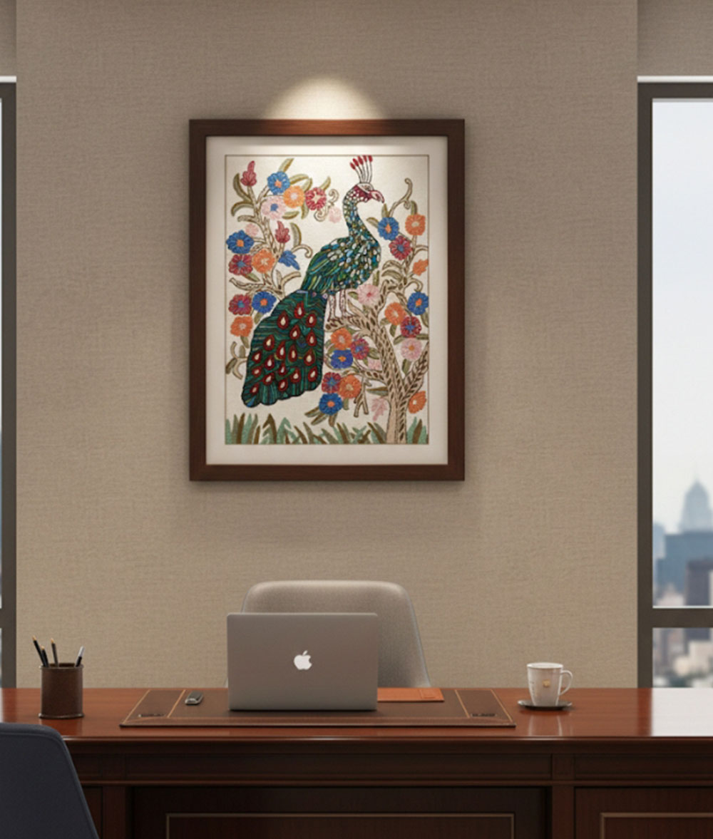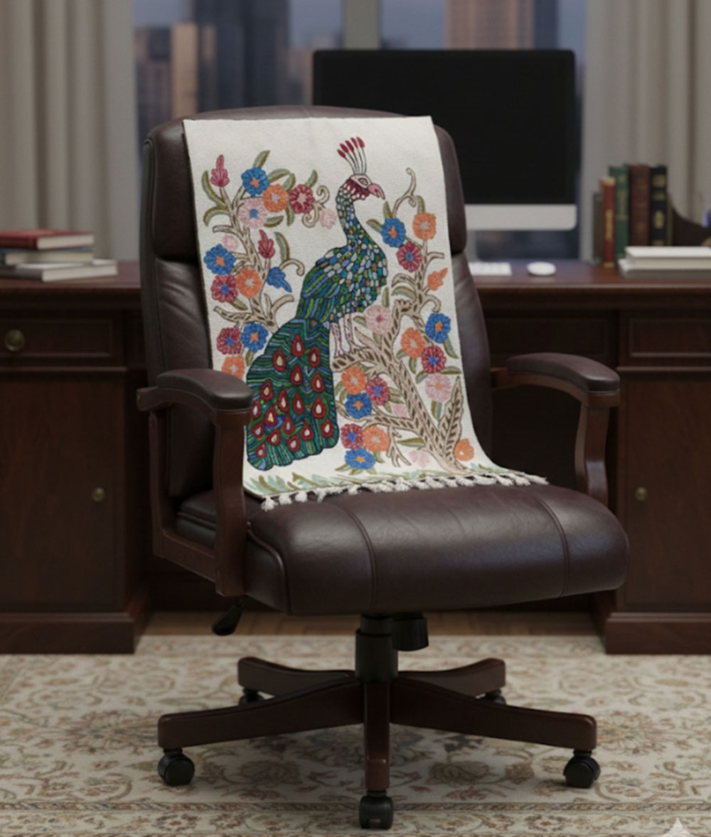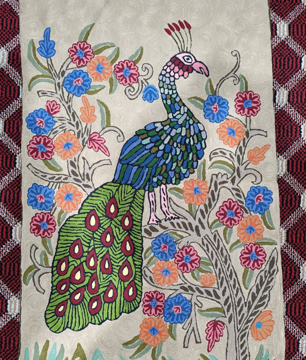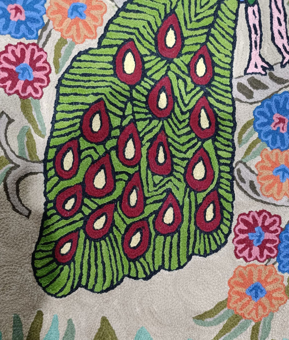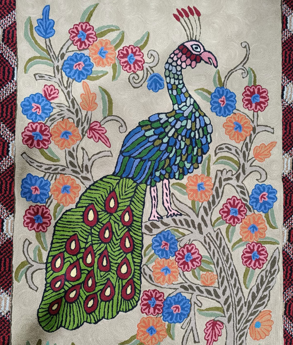 Be the first to review “Kashmir handmade woolen chain stitch peacock design Rug”
